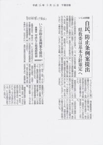 この点につきましては、文教常任委員会の質疑で取り上げさせていただき、特に学校現場での検討を市町村と連携してもらうように要望しました。