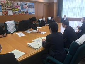 協議会では、森田知事をトップとする執行部の方々、行政委員会の方々、諸先生方のご紹介と、また、これから議会運営を行っていくうえでの諸事項を協議して決めるための世話人会の設置が行われました。
